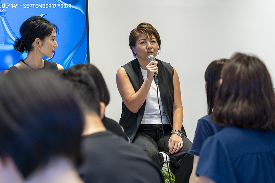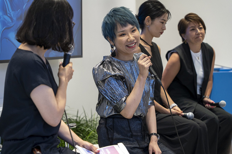 その後、ディスカッションセッション「Think about what is beauty in japan」をテーマに、アクティブウエアブランド「DANSKIN」を手掛けるゴールドウインの大井香織さん、モデル・女優のヤハラリカさん、メイクアップアーティストの池内ひろこさんを迎え、渋谷未来デザイン事務局長/SIWエグゼクティブプロデューサーの長田がファシリテートしながら、それぞれの体験談やその経験から学んだ気づきなどを話し合いました。