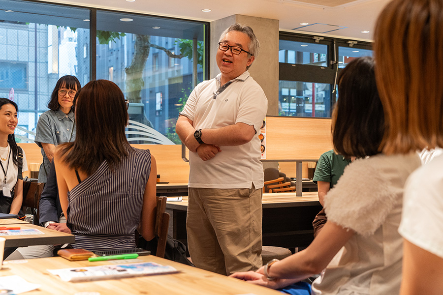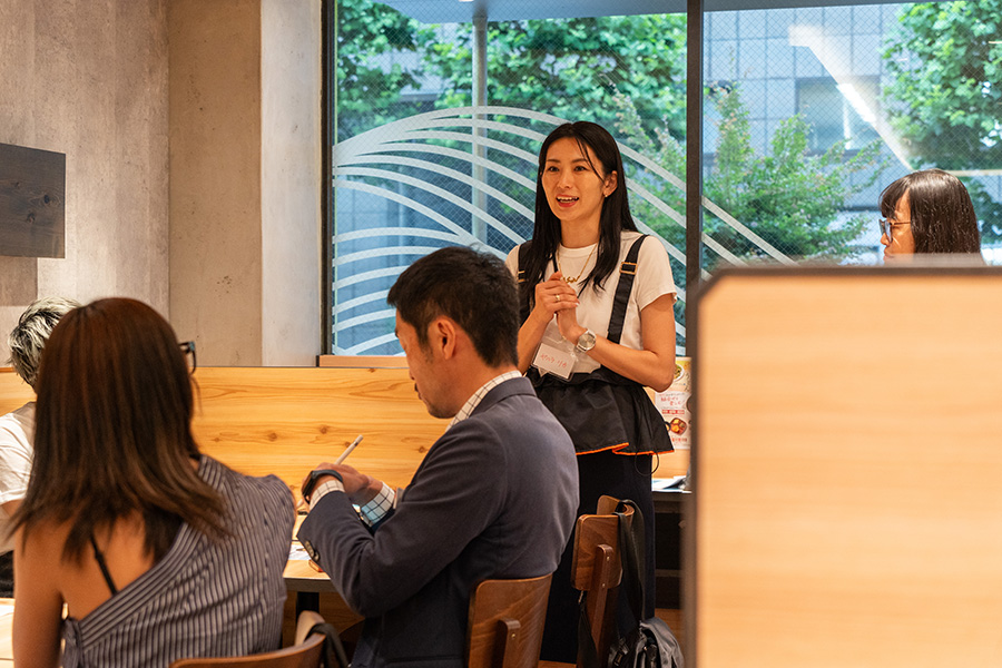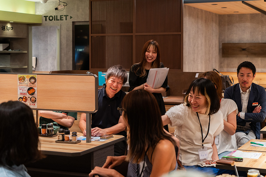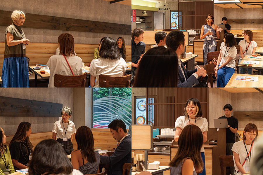 体験の後は、新しい店舗の内装やメニューへの感想をみんなでシェア。「女性」視点をはじめ多様な視点から様々な意見が飛び交いました。