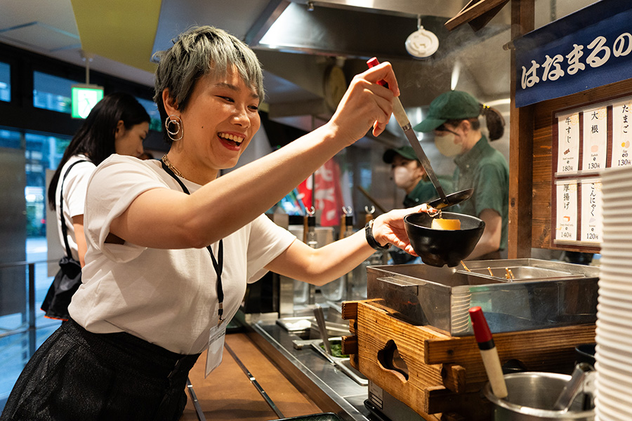 おでんが新たなメニューに加わったことで「タンパク質を摂取できる機会が増えて嬉しい」という元サッカー選手でOPTファウンダーの下山田志帆さん。