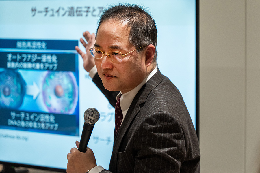 井上浩義さん「地球は珍しい惑星で、酸素があるがゆえに水が存在し、我々は酸素を利用してミトコンドリアで大きなエネルギーを作り出すことができる。しかし、40歳を過ぎるとこの酸素が私たちに悪影響を及ぼすようになる。それが活性酸素です」