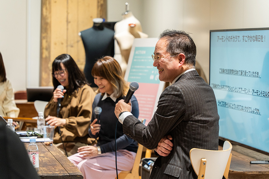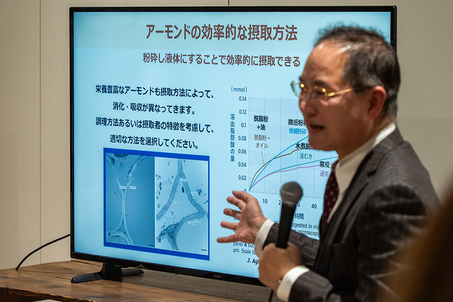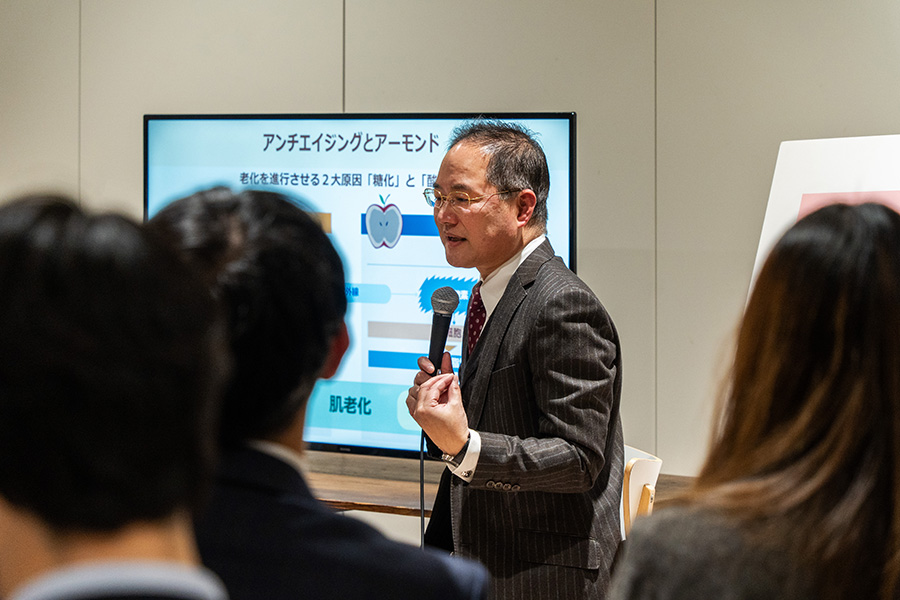 「アーモンドはちょっと値段が張ると思う人も多いが、アーモンドを食べるだけで健康になるというよりも、アーモンドを食べているという意識を持って過ごすと、例えば『1駅分だったら歩こうか』という健康志向の気持ちも生まれてくる。ぜひ、アーモンドを自分の生活習慣の見直しの一つのきっかけにしてほしい」
