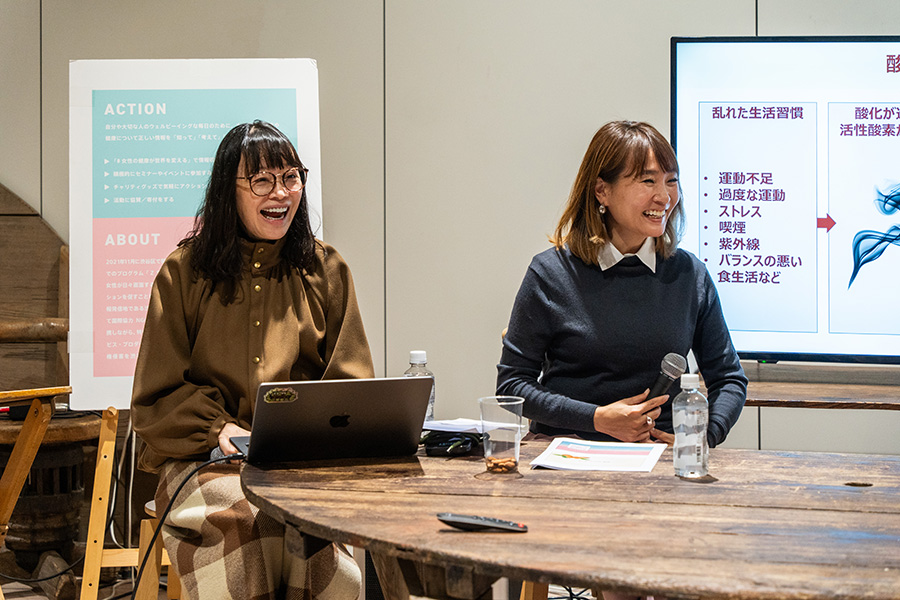 江崎グリコと渋谷未来デザインのウェルネス向上プロジェクト「わたしたちのウェルネスアクション」がコラボレートし、みんなで心身の健康を考えるイベントが1月27日に行われました。そのなかで「酸化ストレスとウェルネス」をテーマにした特別セミナーを実施。慶應義塾大学医学部教授の井上浩義さん、ラジオパーソナリティ/バイリンガルMCのRIBEKAさん、渋谷未来デザインの長田新子が登壇し、酸化ストレスという観点から、現代女性の健康とアーモンドの抗酸化作用が紹介されました。